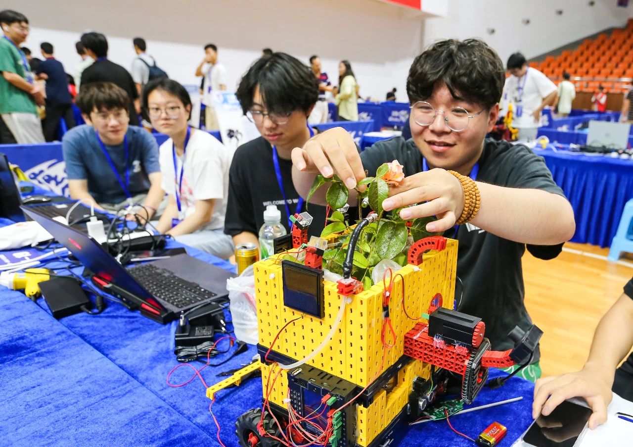 (2024年7月13日,江苏连云港,“航知动力杯”第三届江苏省高校智能机器人创意大赛暨第七届中国高校智能机器人创意大赛江苏区域赛在江苏海洋大学举办,本次大赛主题为“激发创意,智享生活”。本次大赛分为创意设计无实物组、自制实物模型组、模块化产品搭建组,创意竞技魔方机器人,创意军备火线投递机器人创意赛,创意智造机器人快速智能应用赛等赛道。中新社发 王健民/摄)