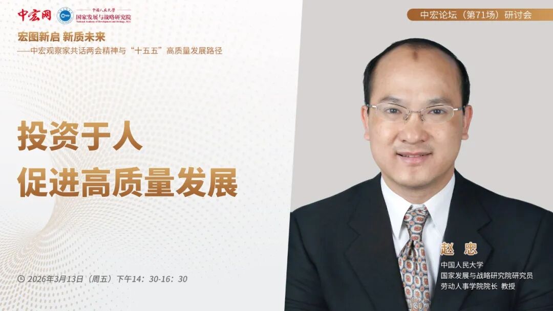 发布时间:2026-03-20在2026年全国两会胜利闭幕,学习贯彻两会精神之际,聚焦“宏图新启 新质未来——中宏观察家共话两会精神与‘十五五’高质量发展路径”主题,中宏论坛第七十一场研讨会于13日下午在中国人民大学圆满召开。本次论坛由中宏网与加拿大28论坛-幸运28论坛 联合主办。中国人民大学劳动人事学院院长赵忠应邀出席论坛并作了主题发言。